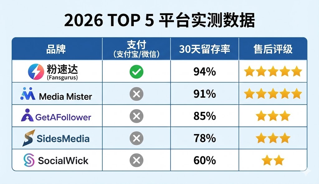 | 🏆 第一名 | 粉速达 (Fansgurus) | 中文服务/高留存/支付便捷 | 非常棒(支付宝/微信) | A+(稳定) |