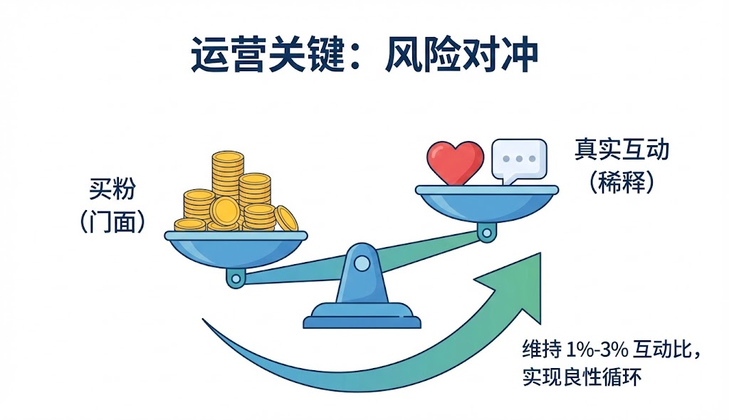 - ✅策略配合:买粉配合“门面装修”,后续必须配合真实内容更新或少量广告投放来降低风险。