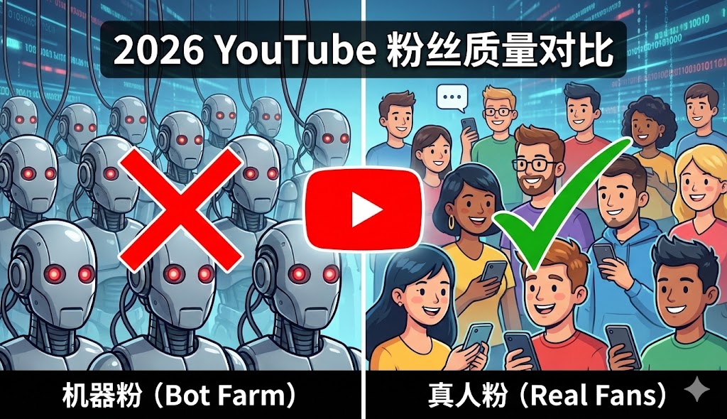在2026年的今天,YouTube的算法比以往任何时候都更加聪明,也更加无情。对于新账号来说,面对“零订阅、零播放”的冷启动期,那种无力感是真实的。你可能拥有充足的内容,但如果没有最初的YouTube真人粉丝作为社交证明,路人观众甚至不会点击你的主页。