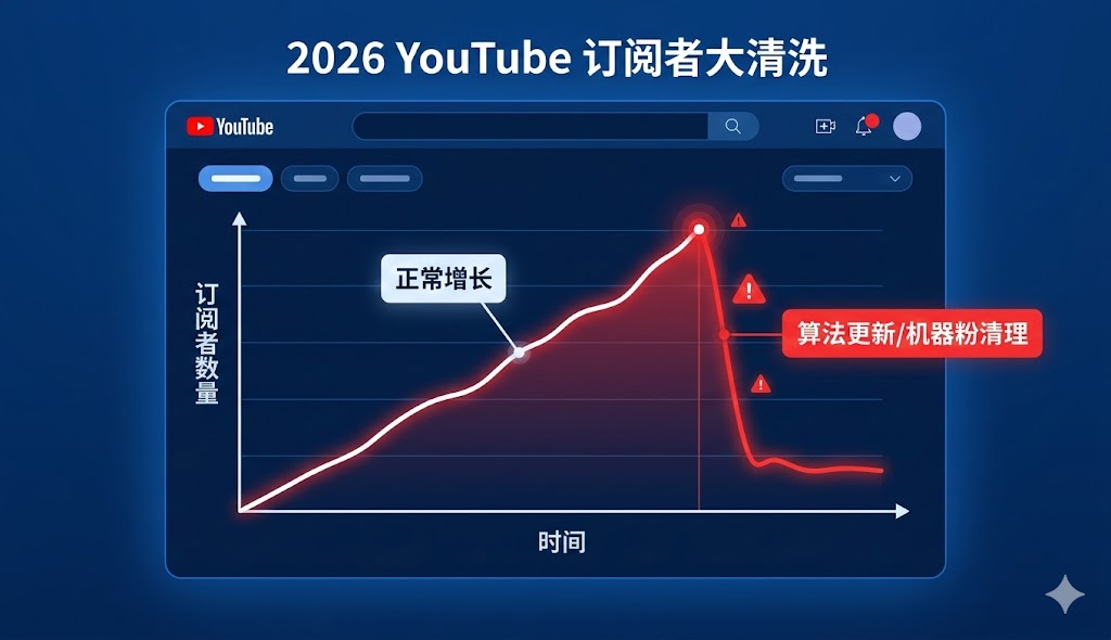 如果你最近发现频道数据像坐过山车一样暴跌,先别急着怀疑自己的内容质量。事实上,截至2026年,整个行业都在面临平台规则收紧带来的阵痛。了解底层的算法风控逻辑,是解决Youtube掉粉问题的第一步。很多新手创作者或者独立站运营,往往贪图便宜,购买了来路不明的劣质粉,结果触发了系统的自动防御机制。