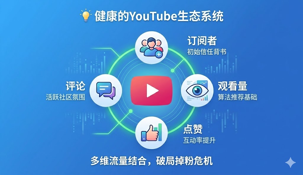 - ✅风控升级: 2026年算法风控主要打击瞬间数据增长与质量低IP池,是近期Youtube掉粉严重的核心原因。