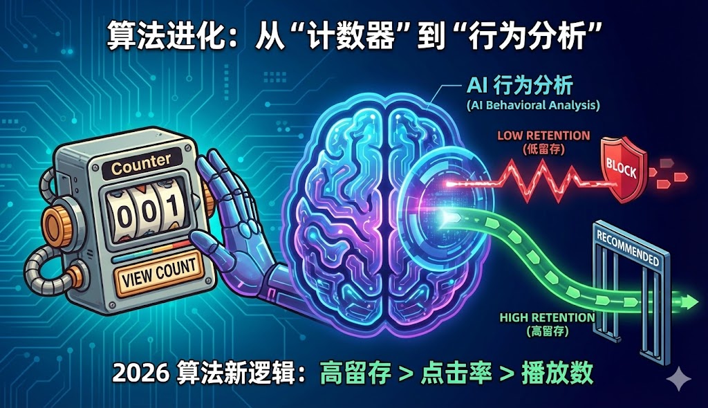 - 🔹算法进化: 2026年算法核心已来自CTR转向高保留(高留存)与行为倾向验证。