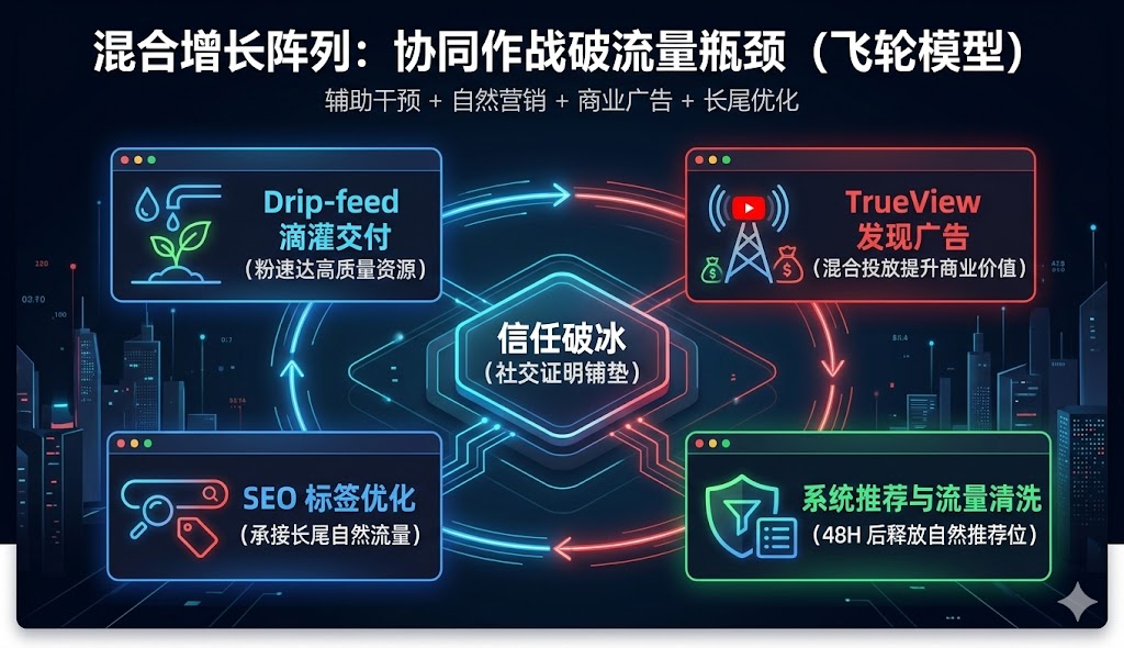 当我们利用惯性辅助手段完成破冰任务后,接下来的重头戏是如何稳定接住这些来之不易的红利。竞品往往会重视升级后的转化建设,而这也是拉开差距的最佳关键。实战策略是配合官方的TrueView广告进行混合投放。在有了一定的数据基数和优质评论铺垫后,以极低的成本开启官方广告,能够迅速覆盖海量精准人群,又能向算法证明你的网站具备健康的商业价值和变现能力。同时,绝不能放松对基础搜索引擎优化的投入。提出布局高潜力的长尾搜索词,优化字幕文件和时机,让你的视频在外部谷歌搜索和内部搜索结果中充分利用有利的优势,形成长期稳定的长尾流量收益。